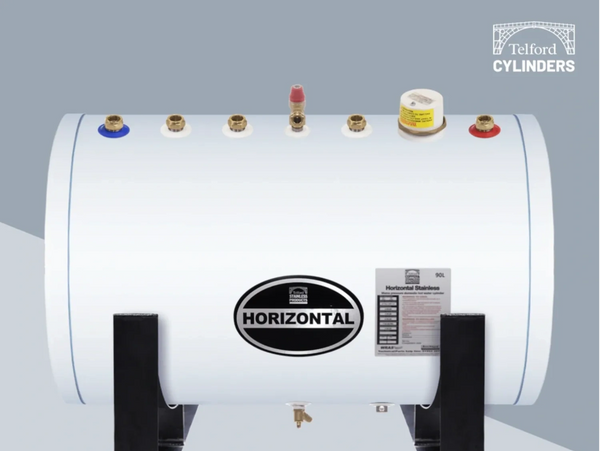 Tempest Horizontal, Indirect hot water storage cylinders feature an internal coil and are designed for use with a gas or oil-fired boiler, as the main heat source (either sealed system or open vented). Ideal for installations where height is an issue, the cylinders are manufactured from Duplex stainless-steel and are supplied with a factory-fitted 3 kW immersion heater to provide back-up heat.